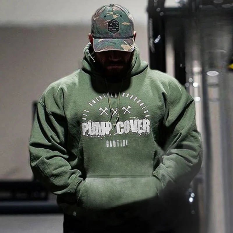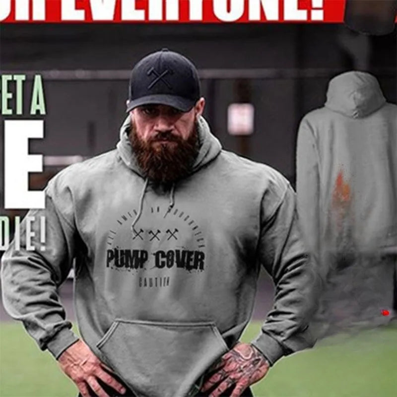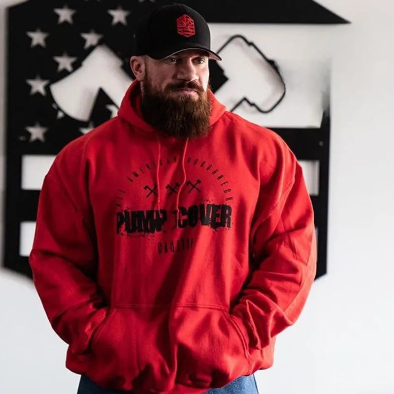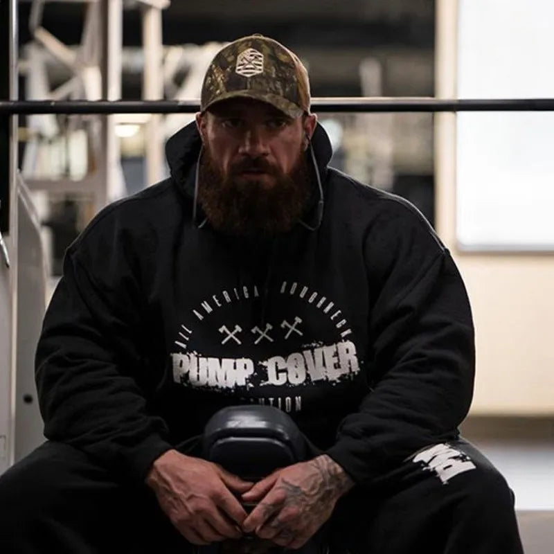 Men's Fitness Clothes Running Plush Loose Fitting Oversized Hooded Pullover Training Clothes Cotton Muscle Sports Hoodie